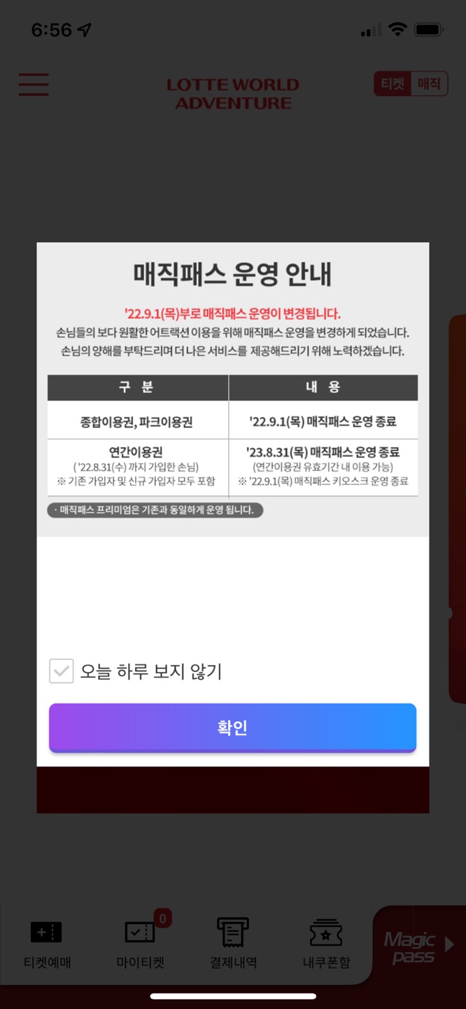 22년9월1일부로 매직패스 운영이 되었다고 해요