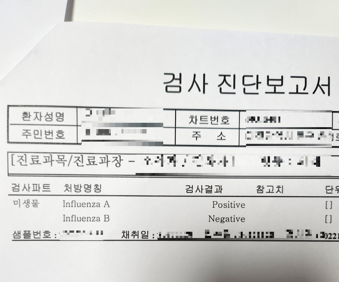 인플루엔자 A 확진! ㅠㅠ