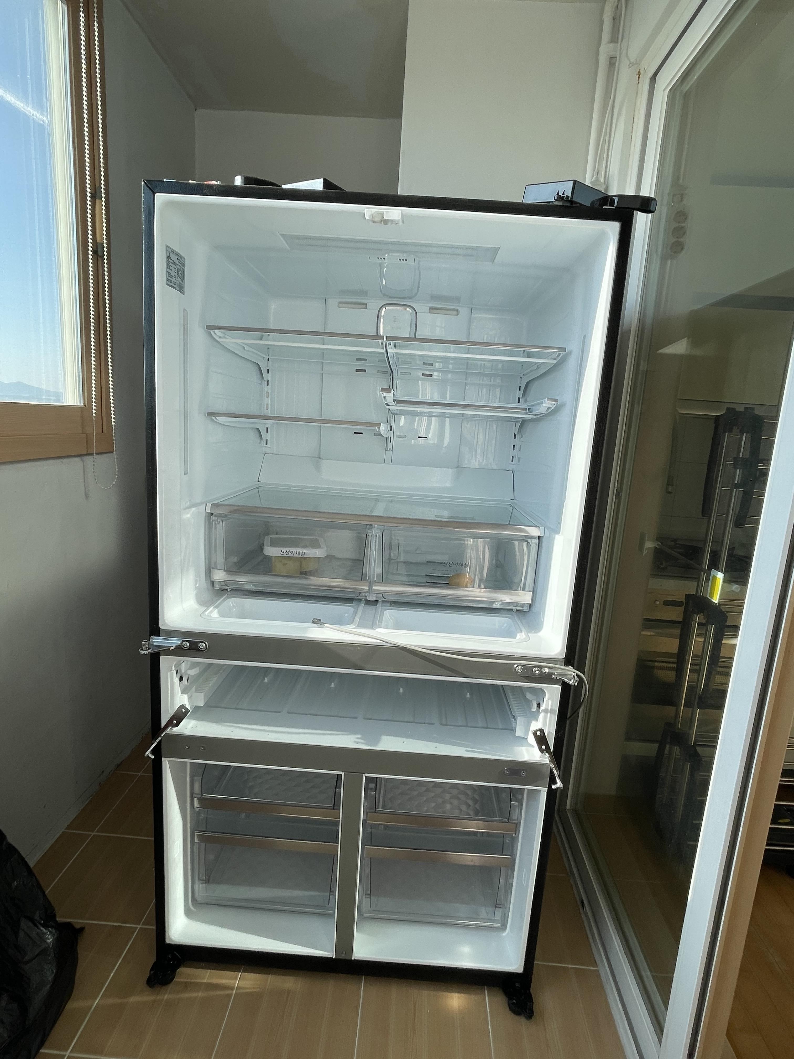 저는 베란다에 냉장고를 넣고 써서 그냥은 나오질 못해서 문짝을 떼고 나왔어요