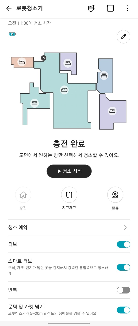청소할 수 있고, 구역별로 청소 순서를 지정할 수 있어요